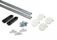Das Bausatz-Set für den Designbeschlag von Türen mit einem Meter Breite besteht aus einer Laufschienenverlängerung, einer Führungsschiene, den beiden Wandhalterungen sowie den Befestigungssätzen für die Schienenverlängerung. Es eignet sich für Schiebetüren mit einem Gewicht von bis zu 80 kg und kann im Innen- und Außenbereich eingesetzt werden. Darüber hinaus finden Sie weitere Sets für Türen mit 2 Metern Breite.
